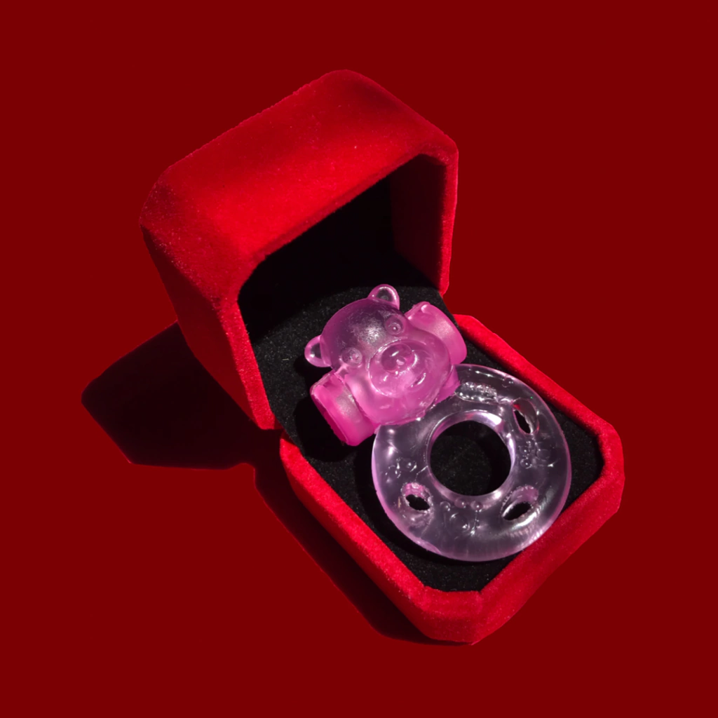 Anel Peniano com vibro e texturas que estimulam o clítoris da mulher e o escroto do parceiro (saco) durante a relação sexual.
